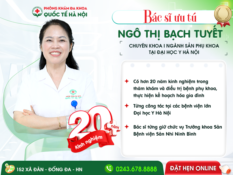 Với đội ngũ bác sĩ giàu kinh nghiệm cùng dịch vụ y tế toàn diện, Phòng khám Đa khoa Quốc tế Hà Nội (152 Xã Đàn) sẵn sàng trở thành người bạn đồng hành tin cậy, mang đến dịch vụ khám chữa bệnh an toàn, hiệu quả cho chị em. Mọi thông tin chi tiết vui lòng liên hệ Tại đây hoặc qua số hotline: 0243 678 8888082 999 2020